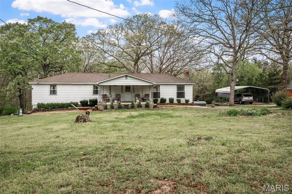 First showing Saturday, April 18th. Opportunity knocks on acreage! This property offers incredible sweat equity potential for the buyer ready to make it their own, all set on gorgeous land featuring cleared, level front and back yard space surrounded by wooded privacy. A 2-car tuck-under garage, 2-car carport, shed, and barn offer tremendous storage and utility, while the U-shaped drive makes entertaining and turnarounds a breeze. Entertain in style with a family and dining room combination highlighted by a stone wall, and a breakfast room with butler's pantry that flows seamlessly onto the large, partly covered deck - perfect for morning coffee or evening gatherings. The kitchen already boasts ample space for a future island, while laminate wood-look flooring adds warmth throughout the main level living areas. The primary suite is truly impressive in size, featuring dual ceiling fans and a private bath with shower and linen closet. Secondary bedrooms are exceptionally spacious, and the hall bath impresses with a dual-sink vanity and glass door shower. Main floor laundry adds everyday convenience. A full walk-out lower level complete with kitchen and half bath provides a blank canvas ready to be finished to your vision. Major updates include a roof (approx. 9 years) and HVAC (2015). Come see the potential - this one has it all!